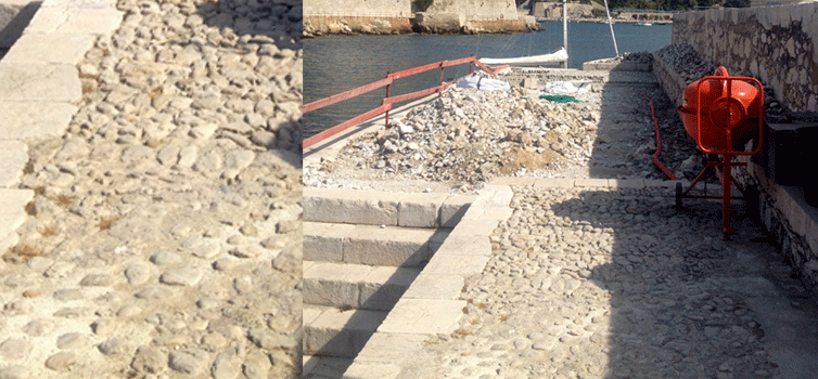 Aujourd’hui, le béton autorise la réalisation facile de sols couchés résistants et la calade qui demande plus de main d’œuvre est devenue une réalisation plus onéreuse.