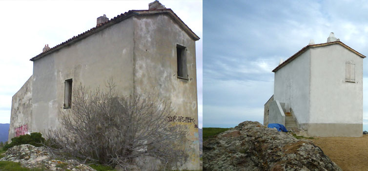 Les murs étant construits avec un fruit (murs inclinés vers l'intérieur), il ne faut pas rattraper celui-ci par un enduit trop épais, les angles seront de préférence réalisés sans arêtes vives pour conserver la douceur des formes de ces bâtiments anciens.