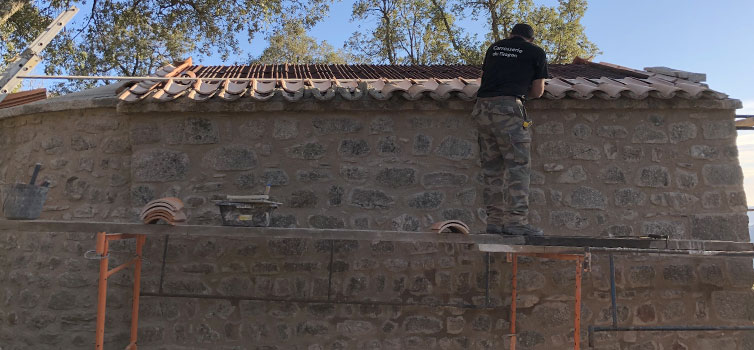 Les espaces importants sont comblés avec de la pierre de récupération du site, les surépaisseurs