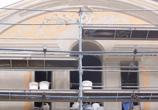 Une application de badigeon de réhumidification colorante (eau troublée de mortier) sera appliquer à l’ensemble du panneau traité pour adoucir la surface et intégrer la partie rénovée dans la généralité de l’ouvrage.